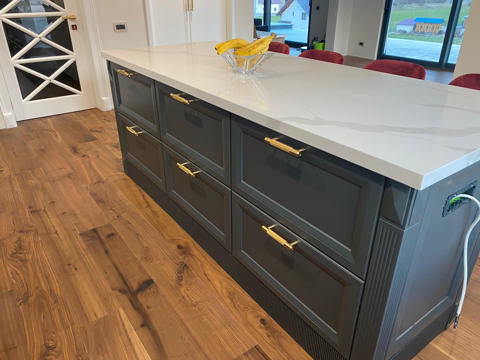 • Blat insulă bucătărie – dimensiuni 2200 x 900 mm, finisat cu prelucrare cant premium perimetral.
