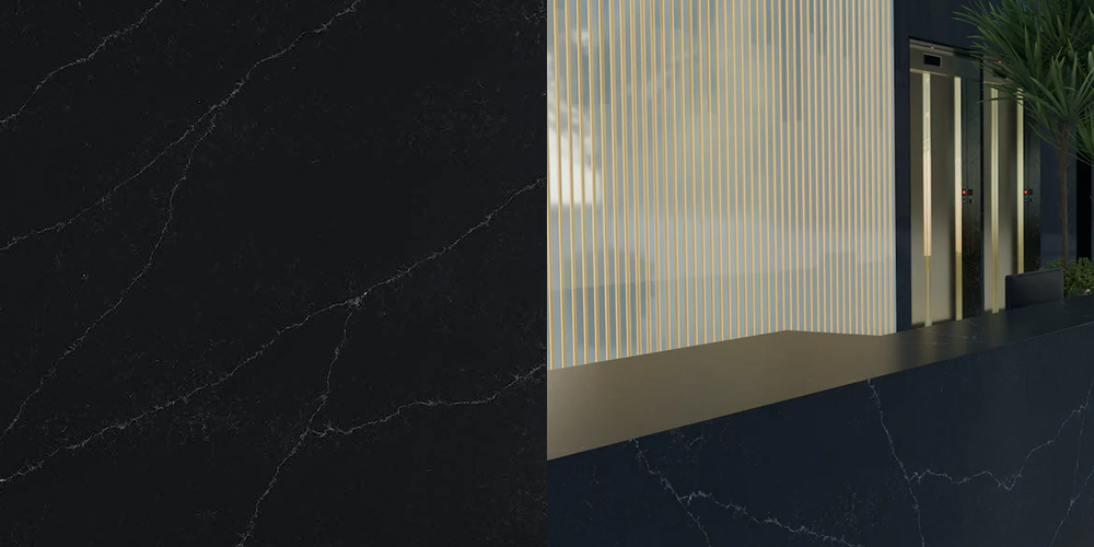 Blaturile de bucătărie din quartz compozit 488 Katanya aduc un touch de eleganță rafinată în orice spațiu. Cu un aspect tip Calacatta, fond negru și venaturi alb-gri light, aceste blaturi sunt adaptabile și potrivite nu doar pentru bucătării, dar și pentru băi, baruri, recepții și spații medicale.